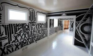 SOUND HOUSE is an experimental sound studio. It is a sonic and visual experience merging the work of three artists to date: Richard Colman, RETNA, and Jon Brumit. Invited artists use the house as a studio space for various periods in exchange for public presentations of their work and/ or adding to the sound archive or house instrument library.