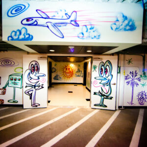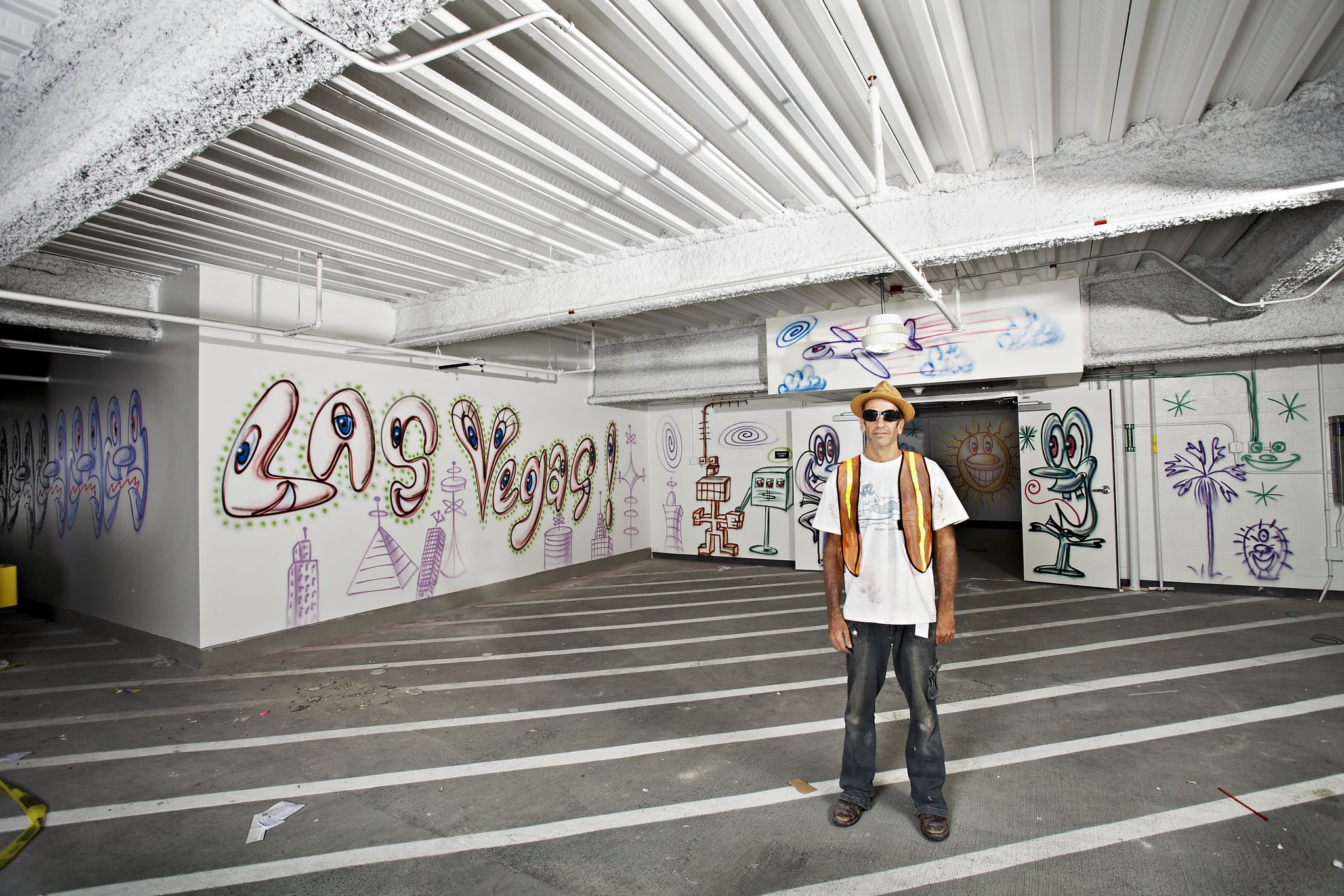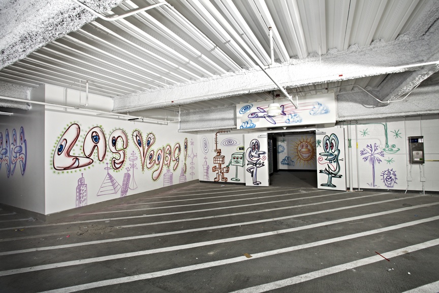 WALLWORKS is four site-specific artist murals, which are located in The Cosmopolitan's parking garage on levels B2 through B5. The commissioned murals are by four major figures in contemporary art: Shepard Fairey (B2), RETNA (B3), Kenny Scharf (B4) and Shinique Smith (B5).