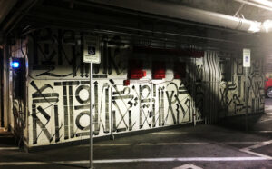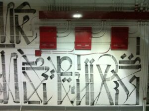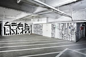 WALLWORKS is four site-specific artist murals, which are located in The Cosmopolitan's parking garage on levels B2 through B5. The commissioned murals are by four major figures in contemporary art: Shepard Fairey (B2), RETNA (B3), Kenny Scharf (B4) and Shinique Smith (B5).